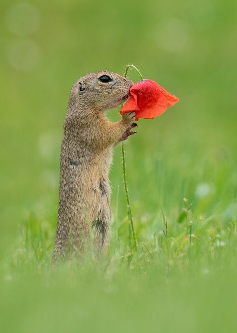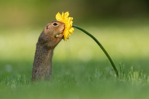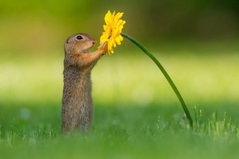 네덜란드 사진 작가가 찍은 꽃향기 맡는 다람쥐