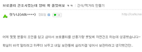 브로콜리 건조시켰는데 양이 확 줄었어요