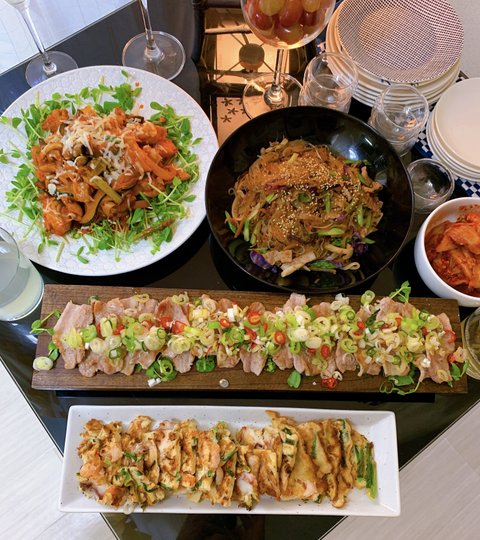 한국 음식으로 작게나마 테이블을 세팅했다.