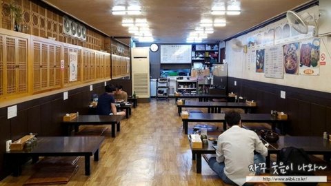 2인이 마주보고 앉는 테이블인데 둘이 나란히 딱 붙어 앉았나봄;;
