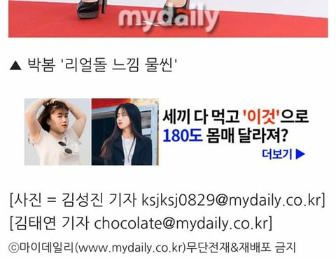 박봄 사진 올리면서 '볼륨이 끝내줘요' '리얼돌 느낌 물씬' 이라는 코멘트 다는 마이데일리의 김태연기자.