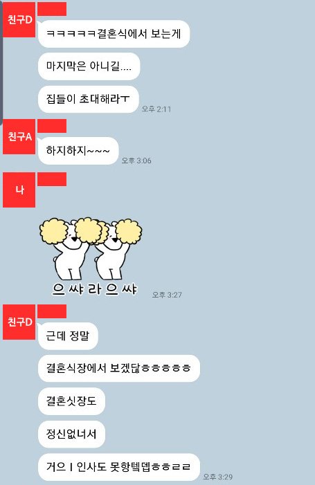 그리고 결혼식 끝. 저렇게 단체방에 카톡 하나 띡옴. 고맙다고. 별 생각 없었음.