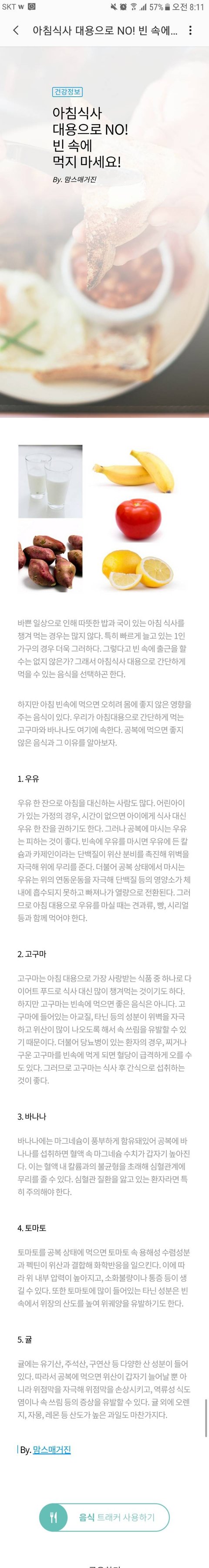 아침에 빈속으로 먹지 말아야 할 음식
