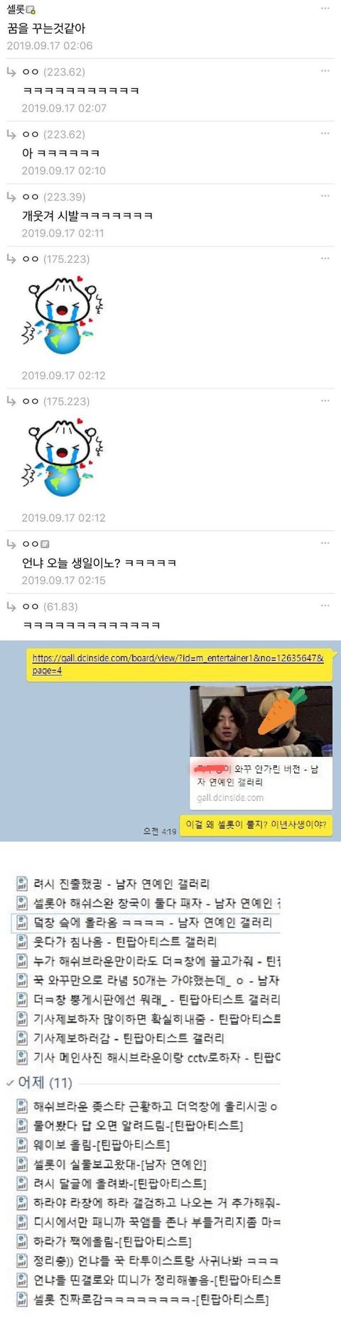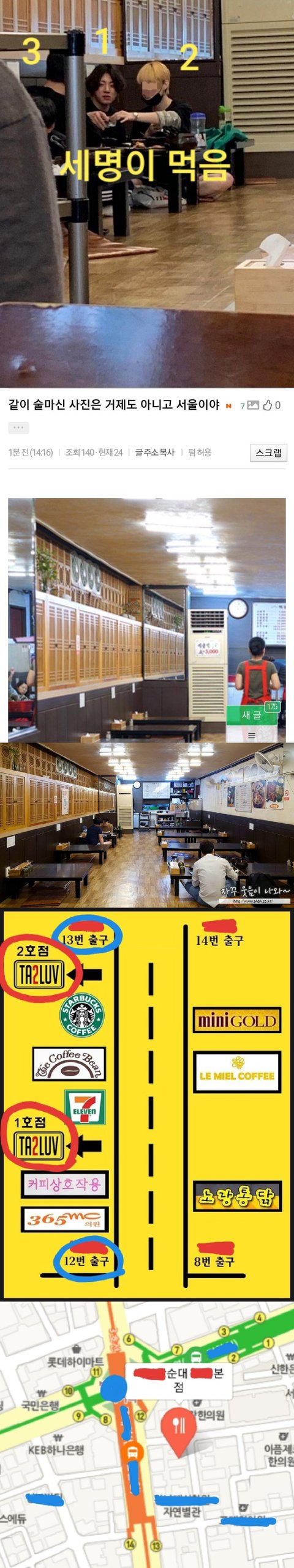 남ㅇㄱ 정국 광까로 유명한 셀ㄹ이 여자분 서울 직장근처 순댓국밥집에서 사생에게 찍힌 사진을 입수해 둘이 거제도에서 추가로 찍힌 사진인 것처럼 전 커뮤에 유포함