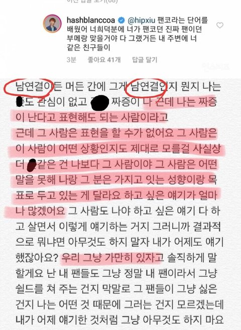 이런 남ㅇㄱ발 루머 유포 과정은 해쉬스완도 이미 인지하고 있다고 인스타 라이브에서 밝힘