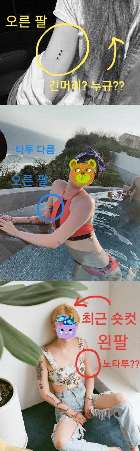 보이는 것처럼 여자분은 양쪽팔 어디에도 xxx표 타투가 없음