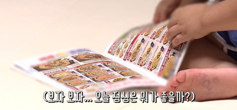 ㅋㅋㅋㅋㅋㅋㅋ배달 책자 보고 아빠가 핸드폰으로 배달시키는 거 봤나봐 ㅋㅋㅋㅋㅋ