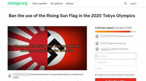 사이버 외교 사절단 반크가 2020년 도쿄 올림픽·패럴림픽에서 욱일기 응원을 금지해달라는 내용을 세계 최대 청원 사이트 '체인지닷오아르지'(www.change.org)에 올렸다.