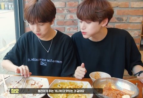 원진이가 오이도 안 먹는다고 하니까 냉면에 있는 오이 다 빼주더라ㅋㅋㅋ 전에 브이앱에서도 언급한 거지만 햄버거 먹을 때 원진이가 안 먹는 토마토는 자기가 대신 먹는다는 정모ㅋㅋㅋ(정모 보기와 다르게 가리는 거 없이 다 잘 먹더라.)