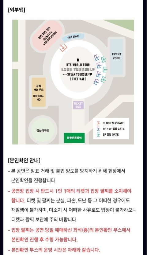 ㅆㄴ) 나도 머스터 갔다왔는데 각 구역별로 입장 입/출구 다르고 그 앞에서 여러명이서 본인 확인함 난 신분증이랑 티켓만 보여주고 확인받고 들어갔엉 내 뒤에 몇몇 부모님이랑 같이 온 아미들은 부모님이 이서류 저서류 다 보여주고 확인 다받고 들어가더라 동반인의 경우는 머스터때 없어서 모르겠는데 아마 같지 싶음 그 예매자가 동반인 구역 먼저가서 입구에서 확인해주고 동반인 먼저 들여보내주고 그담 예매이삐가 자기구역가서 본인확인하고 들어가면 될 듯 팔찌 절대 못빼게 해둠 ㅋㅋㅋㅋㅋㅋㅋㅋ