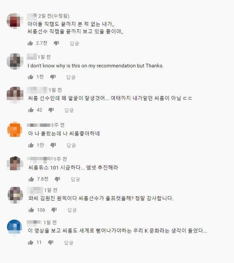 유튜브 보는데 뜬금 없이 씨름이 추천에 뜨는 거