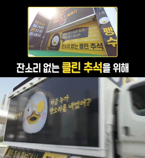 잔소리 없는 클린한 추석 시위하는 펭수