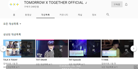 재생목록만 12개인데 그중 제일 많은거 가져와 봄