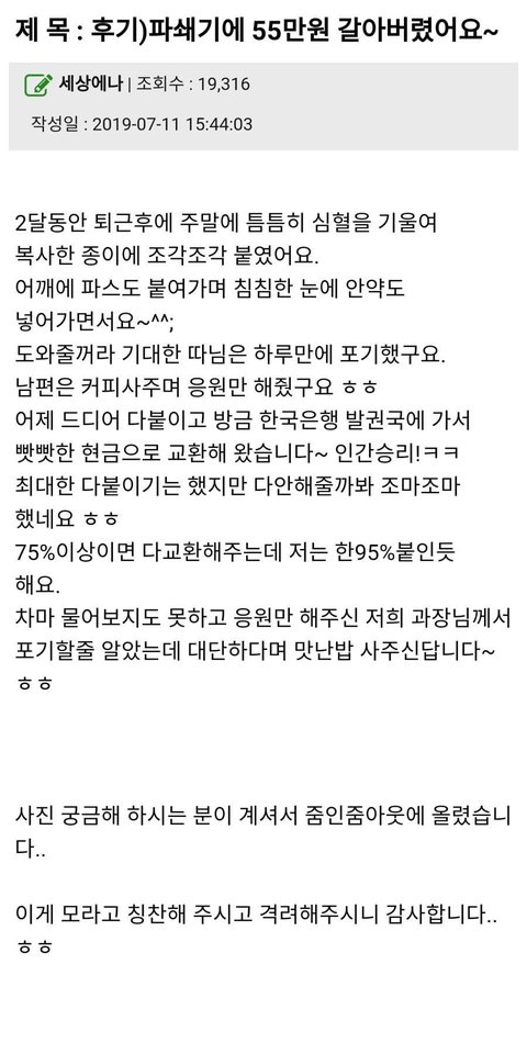 파쇄기에 55만원 넣고 갈아버린 후기