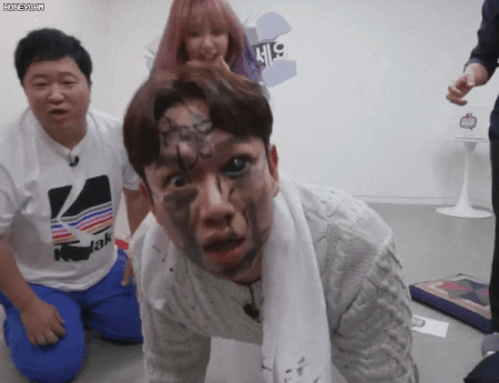 얼굴에 먹칠 당하는 벌칙하는데 먹물이 눈에 들어가가지곸ㅋㅋㅋ