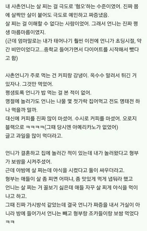 중학생 때부터 저렇게 먹었으면 가족들은 뭘한거야 애가 식이장애수준으로 밥도 안 먹는데...?