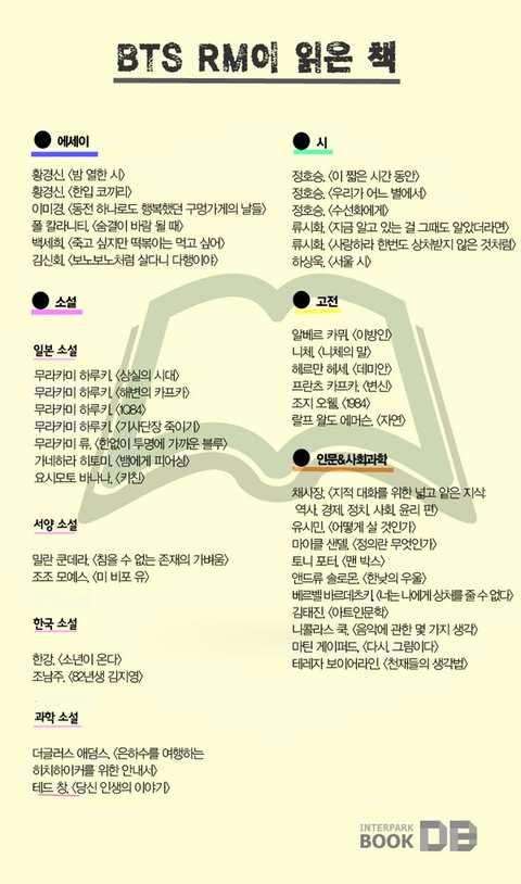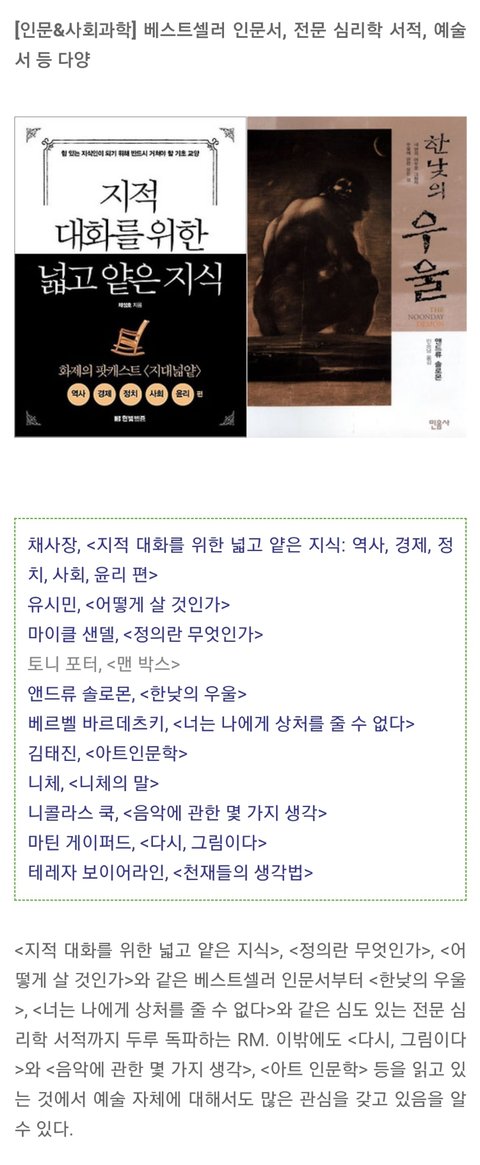 교bo문고에서 RM 독서리스트 총정리란 제목으로 뉴스레터 왔더라구