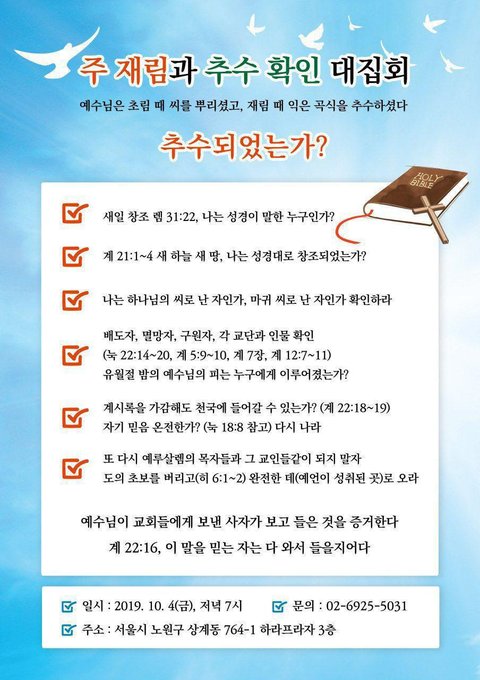이번에 요한계시록의 비밀을 알려주는 세미나가 개최된다는 소식입니다.