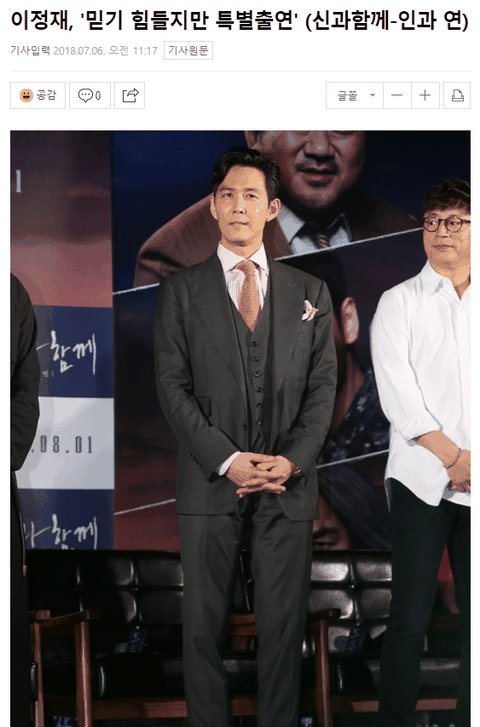 그래서 '신과 함께'에서 이정재가 특별 출연이라는 사실을