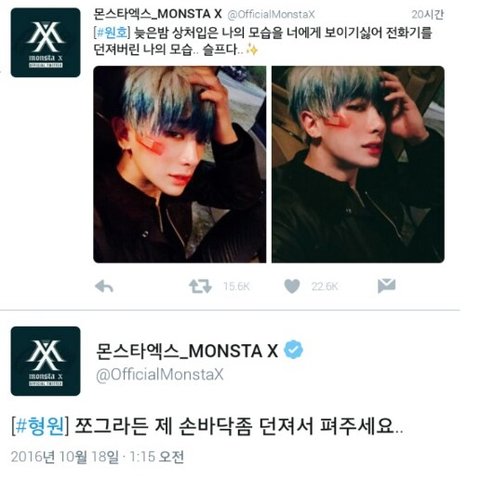 염색물이 빠지면서 공연중에 피를 흘린 아이돌로 올라왔던 몬스타엑스 원호