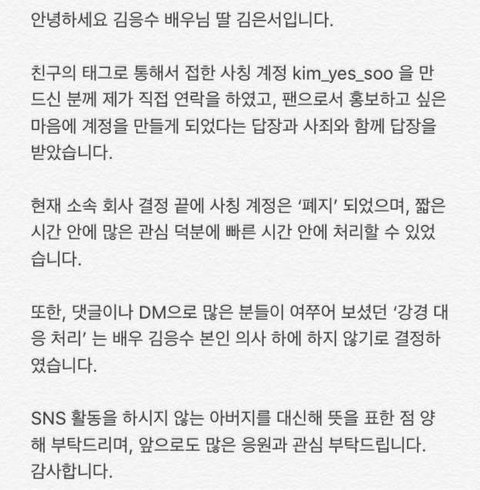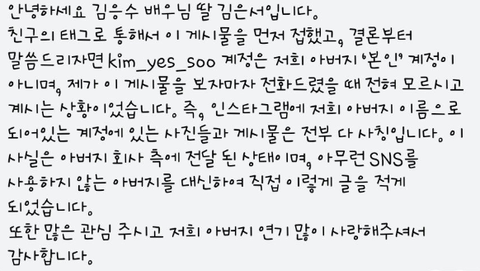김응수를 사칭해 만든 가짜 계정이라고 밝혔다.