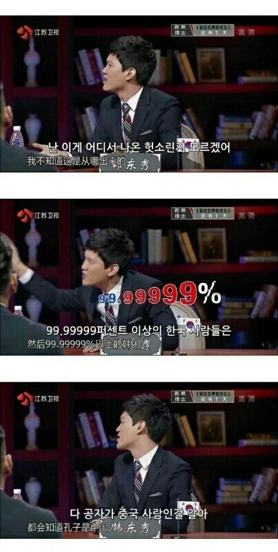 중국판 비정상회담 세계청년설 (중국이 우리나라 비정상회담 판권사간거) 일단 중국인들 사이에서는 '한국인들은 공자,맹자가 한국인인줄 안다' 는 루머가 만연함.