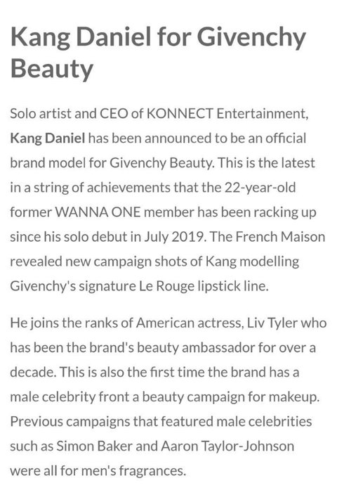 Kang Daniel has been announced to be an official brand model for Givenchy Beauty....the first time the brand has a male celebrity front a beauty campaign for makeup.