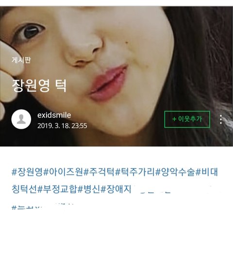 저정도 턱갖고 까이는거 보면 장원영이 얼마나 완벽하게 생겼는지 알 수 있는듯