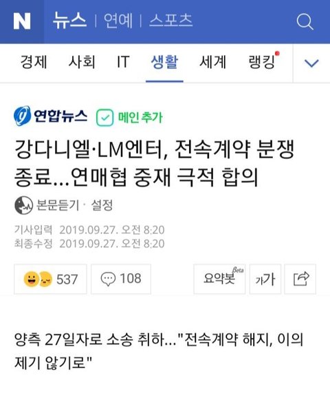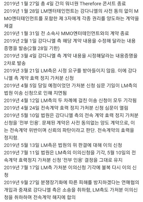 금일(27일) (사)한국연예매니지먼트협회(이하 연매협)를 통해 보도된 소속 아티스트 강다니엘과 전 소속사 엘엠엔터테인먼트와의 전속계약 분쟁 및 해지에 관한 합의에 대해 아래와 같이 당사의 공식 입장을 표명합니다.