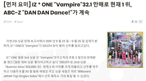 아이즈원 일본 빌보드 3일차 판매량 역대 신기록 달성