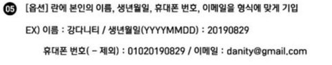 이름 : 강다니티 생년월일(YYYYMMDD) : 20190829 휴대폰 번호(-제외) : 010-2019-0829 이메일 : danity@gmail.com 강다니티 모냐고ㅋㅋㅋㅋㅋㅋㅋㅋ