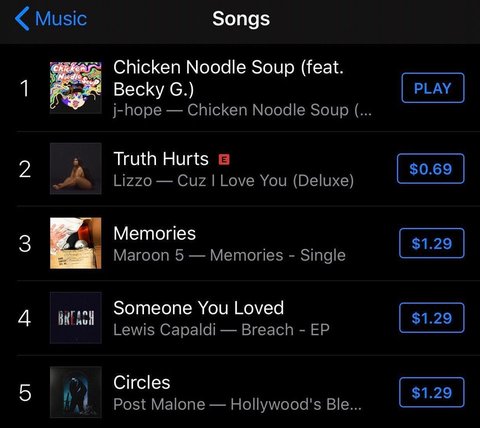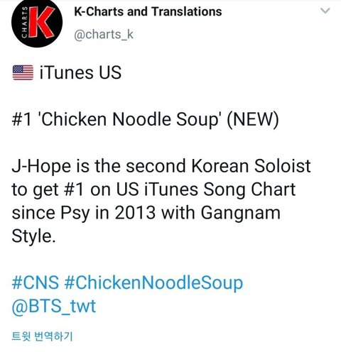 방탄 제이홉 '치킨누들숲' 아이튠즈 US 송차트 1위