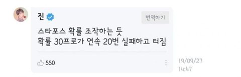 내가 아이돌 정말 관심없는데 진은 좋아함... 나도 메이플 유저거든.....
