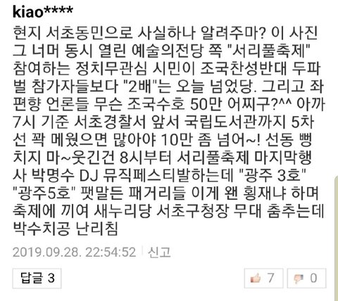 조국 수호 검찰개혁 집회라는데 검찰개혁이 뭔지나 알고 저러는지 원 중국판 공수처 만들어서 검찰 장악하고 장기집권 하려는 건데 나랏일이나 잘 하면서 저 짓하면 그래~하는거지 애 엄마들 10년쯤 뒤에 애가 커서 중국인들 와글와글 거리고 중국 같은 사회주의 국가에서 살면 그 땐 정신 차릴까ㅉㅉ아무리 모지래도 글치