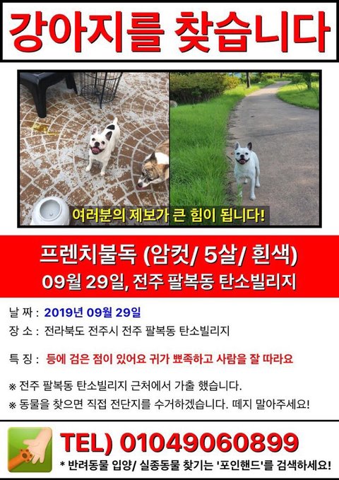 전주 팔복동 에서 지인이 강아지를 분실하였습니다.