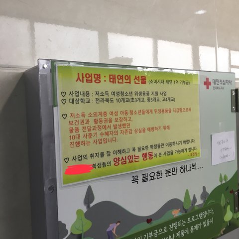 태연이 우리 지역출신이라 기부해서 곧 있으면 생리대 들어옴 진짜 필요한 애들을 위한 건데 양심 없는 애들이 막 챙겨가고 쓸까봐 걱정임