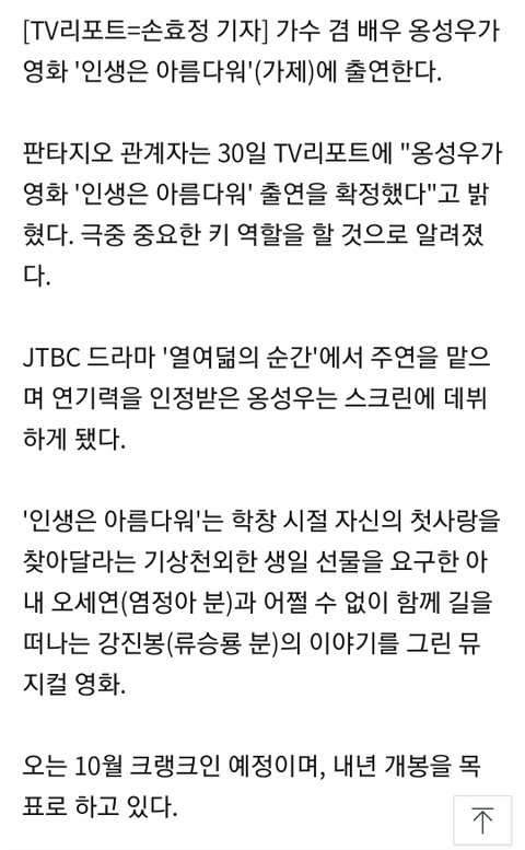 영화판은 신인이 들어가기 힘든곳이라던데 분량 많지 않아도 중요한 역할이래 기대된다 이번 영화 뮤지컬 영화라는데 대학때 뮤지컬 출연 경험도 있어서 잘할듯