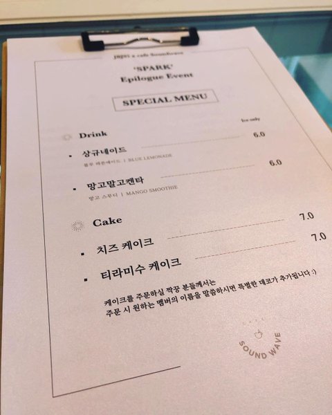 '짝꿍' (=JBJ95 팬클럽)을 위한 특별 메뉴판