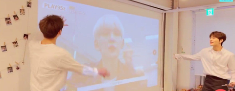 한쪽 벽에선 하루종일 멤버들 영상이 나오고