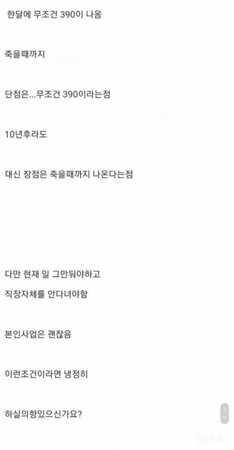 당연히 하지요. 연금으로 390 나오는데. 공무원이 왜 부러운걸까요. 스트레스 적지. 노후 확실하지 ....
