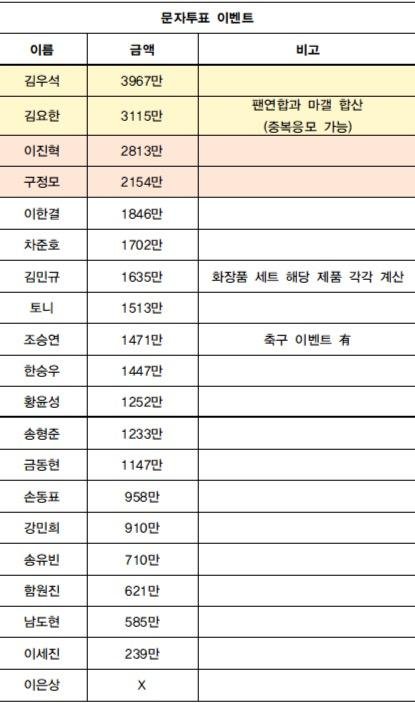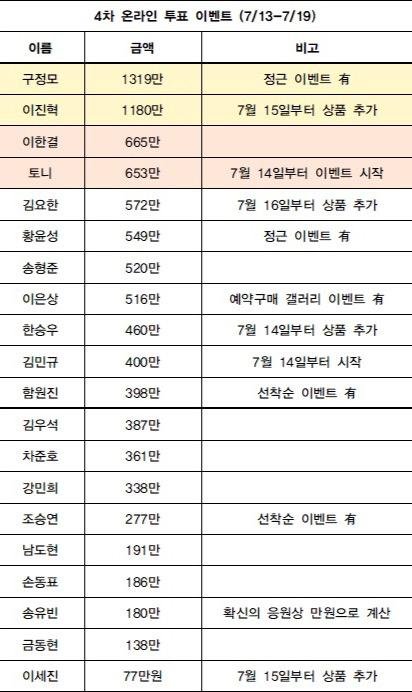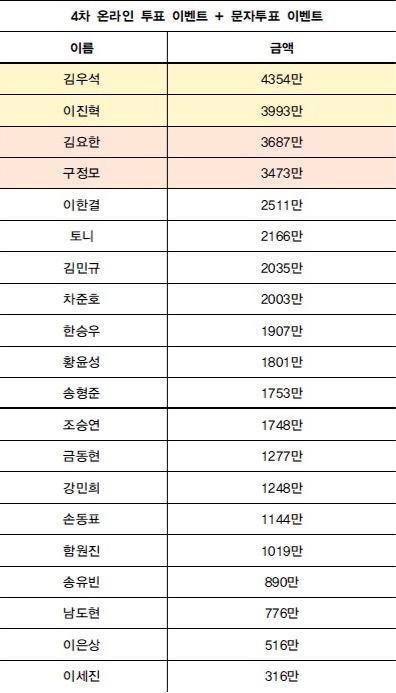 프듀 4차 온라인 투표+문자 투표 이벤트 모금 합산액