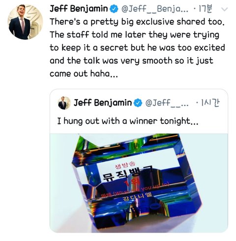 https://twitter.com/Jeff__Benjamin/status/1179093585632755712 Jeff Benjamin 트윗 또 올라옴 ㅁㅊ 개설렌다 강다니엘 인터뷰라니