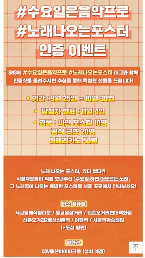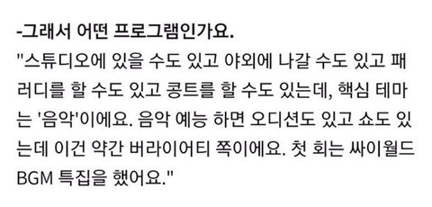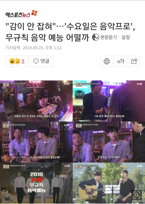 tvn 새 예능 "수요일은 음악프로" 홍보 글이야❤
