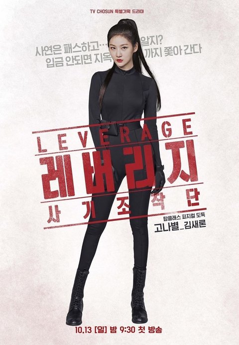 새론이 새로 들어간 드라마 '레버리지 : 사기조작단' 포스터인데