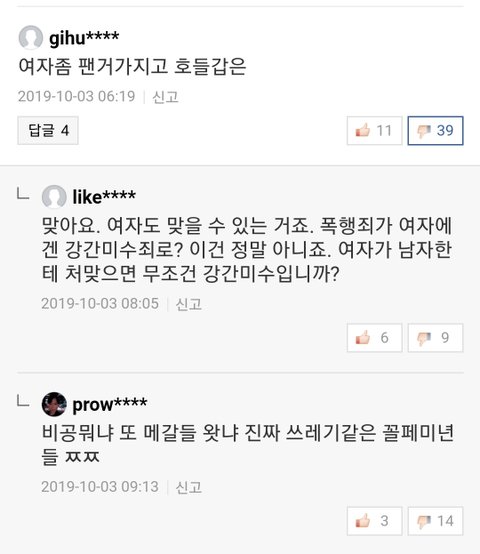 조이 가부장제비판글 좋아요눌렀다가 욕먹는중