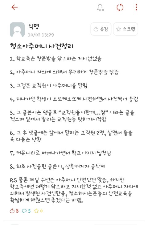 현재 논란되고 있는 대학교 청소 논란