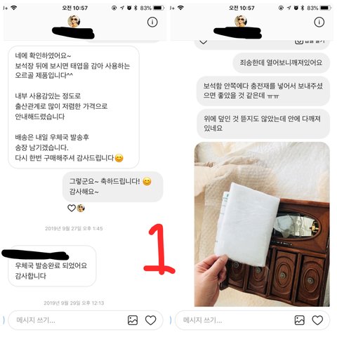 택배를 뜯자마자 사장님께 디엠으로 연락을 드렸습니다.