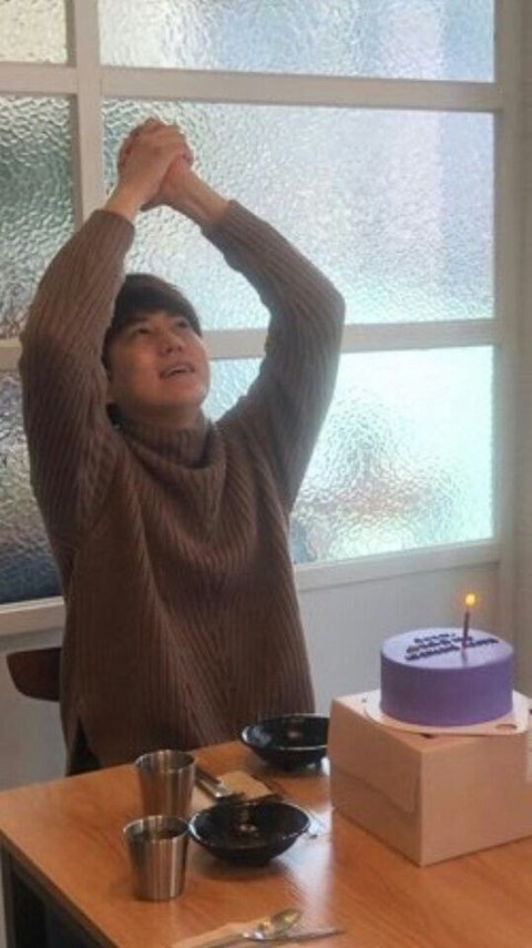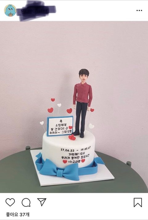 규현이 있고 앞에는 케이크가 있음