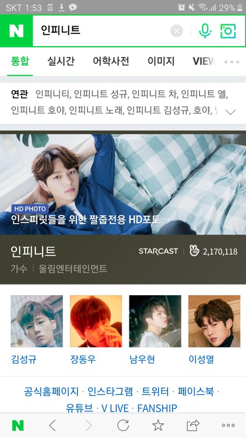 네이ㅂ에 인피니트 쳤을때