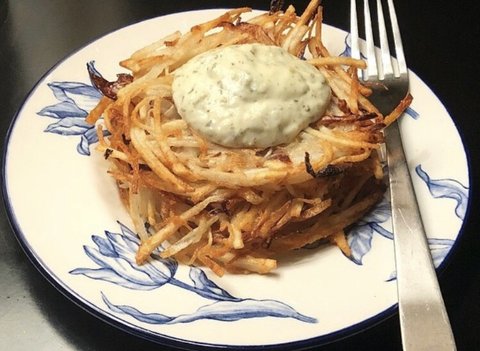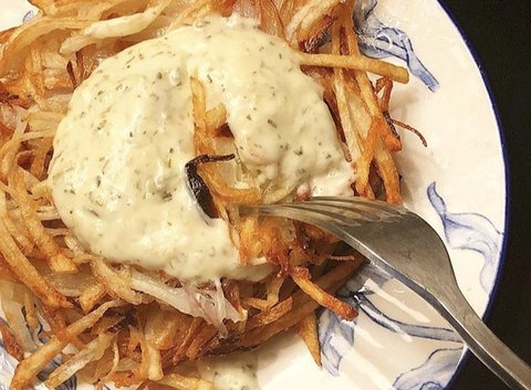 파마산치즈를 갈아 넣고 감자채전+타르타르소스